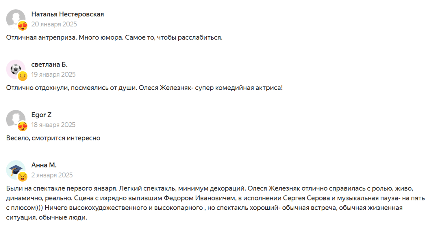 С тонким юмором, иронией и каплей сентиментальности режиссёр Роман Самгин раскрывает природу человеческой натуры. А зрители насладятся игрой известных актёров, в жарких диалогах которых можно услышать отголоски из собственной жизни.